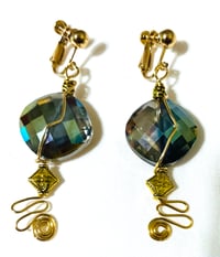 These "Exquisite Clip-on Wire Wrap Earrings" are made with fluorescent glass beads wire wrap with brass, and gold plate clip-ons. AngelaWC Designs puts lots of love into her designs.